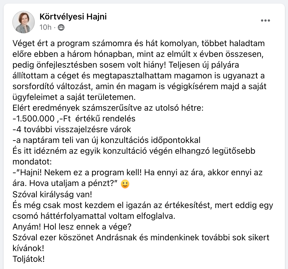 Több tucatnyi képekkel, videókkal, számokkal alátámasztott visszajelzés a módszert alkalmazó sikeres vállalkozóktól!